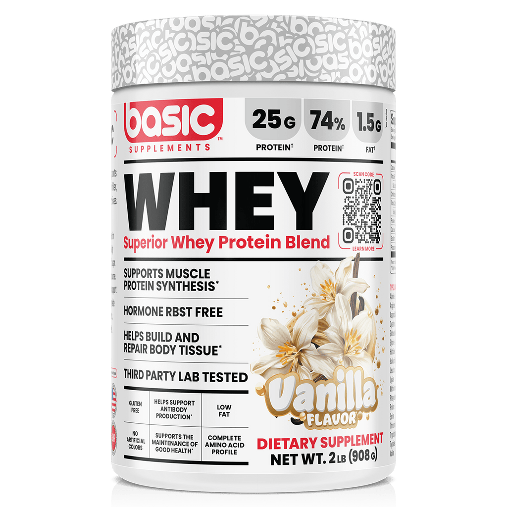 Reach your fitness goals with our Basic Superior Whey Protein Blend, ideal for post-workout recovery. It gives your body the essential nutrients it needs to build muscle, recover quickly, and stay healthy. Our blend is packed with high-quality protein and is easy to digest, making it perfect for anyone who wants to get back to basics with a no-B.S. approach!